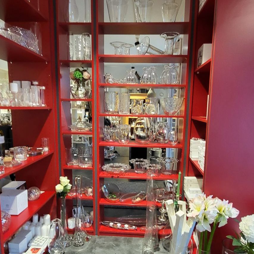 Gläser, Geschirr, Vasen, Etageren, Schüsseln, Küchenutensilien, Getränkeflaschen alles in modernen Farben und Formen.
